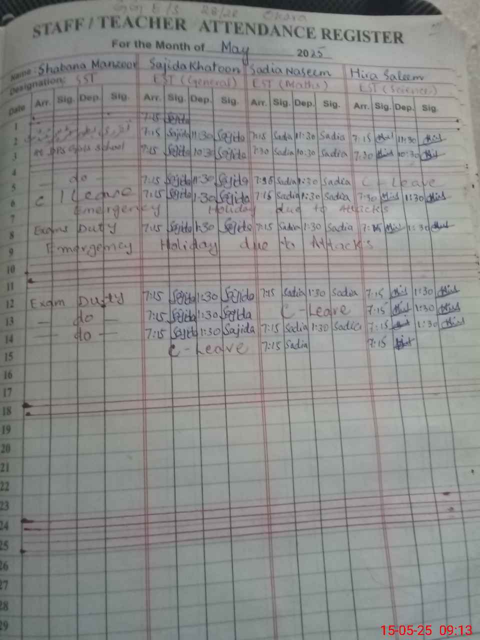 | 35**** | Sh**** Ma**** | SST | Regular | 0 | 0 | 0 | 0 | 0 | 0 | 0 | 0 | 0 | Exam Duty |