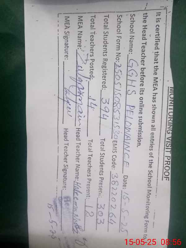 | EMIS Code: 38220264 | Name of School: GGHS PELOWAINCE | |||