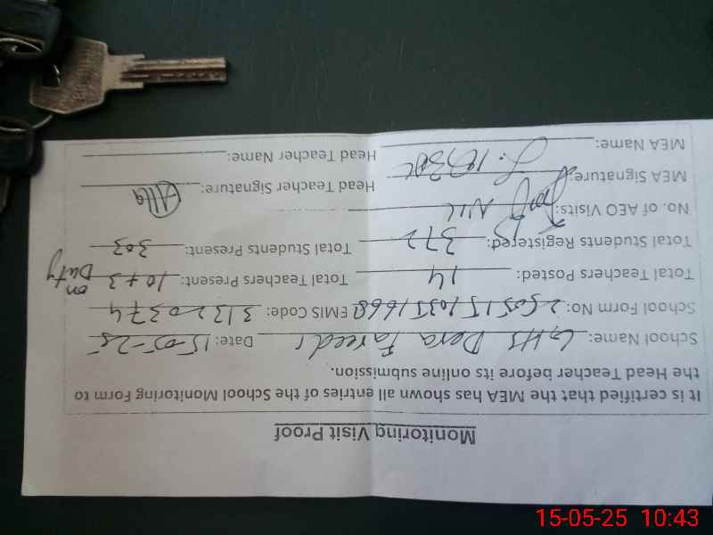 | Attendance Register | Head Teacher | MEA with School | Visit Proof |