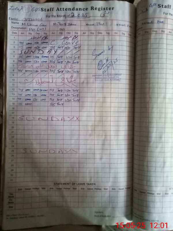 | Name: M.RA**** Designation: (School Headmaster's/Headmistress's) PST/PTC/JV Phone/Cell Number: 03**** |