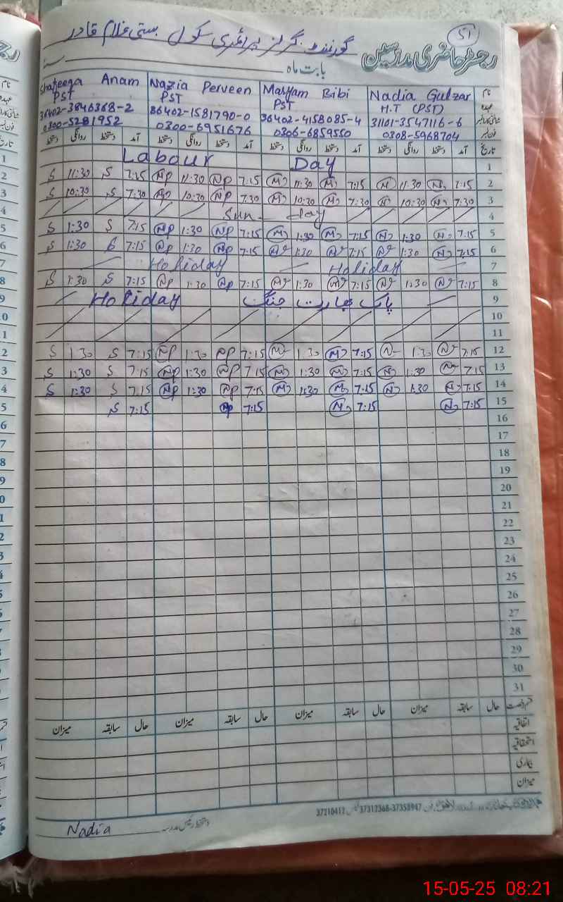 | Name: Sh**** An**** Designation: (School Headmaster's/Headmistress's) PST Phone/Cell Number: 03**** |