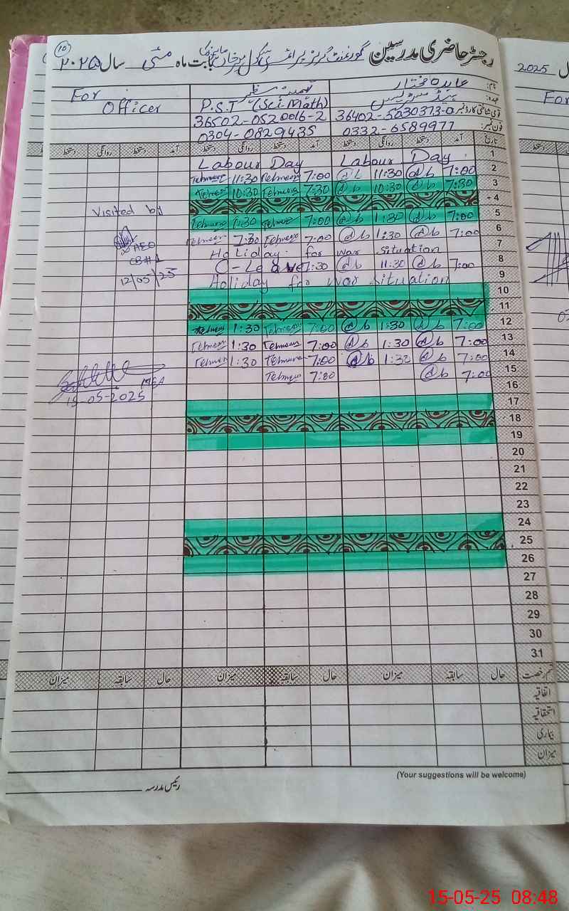| Name: Ab**** Mu**** Designation: (School Headmaster's/Headmistress's) PST Phone/Cell Number: 03**** |