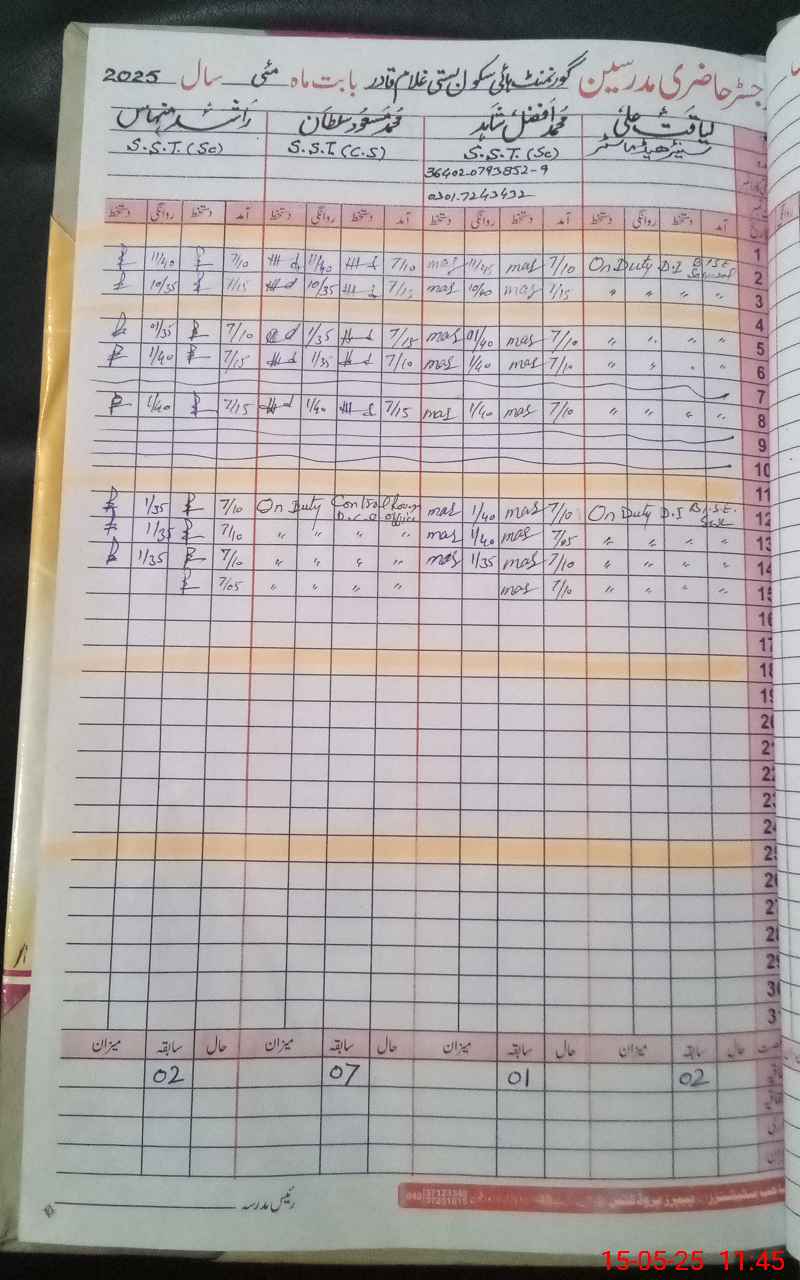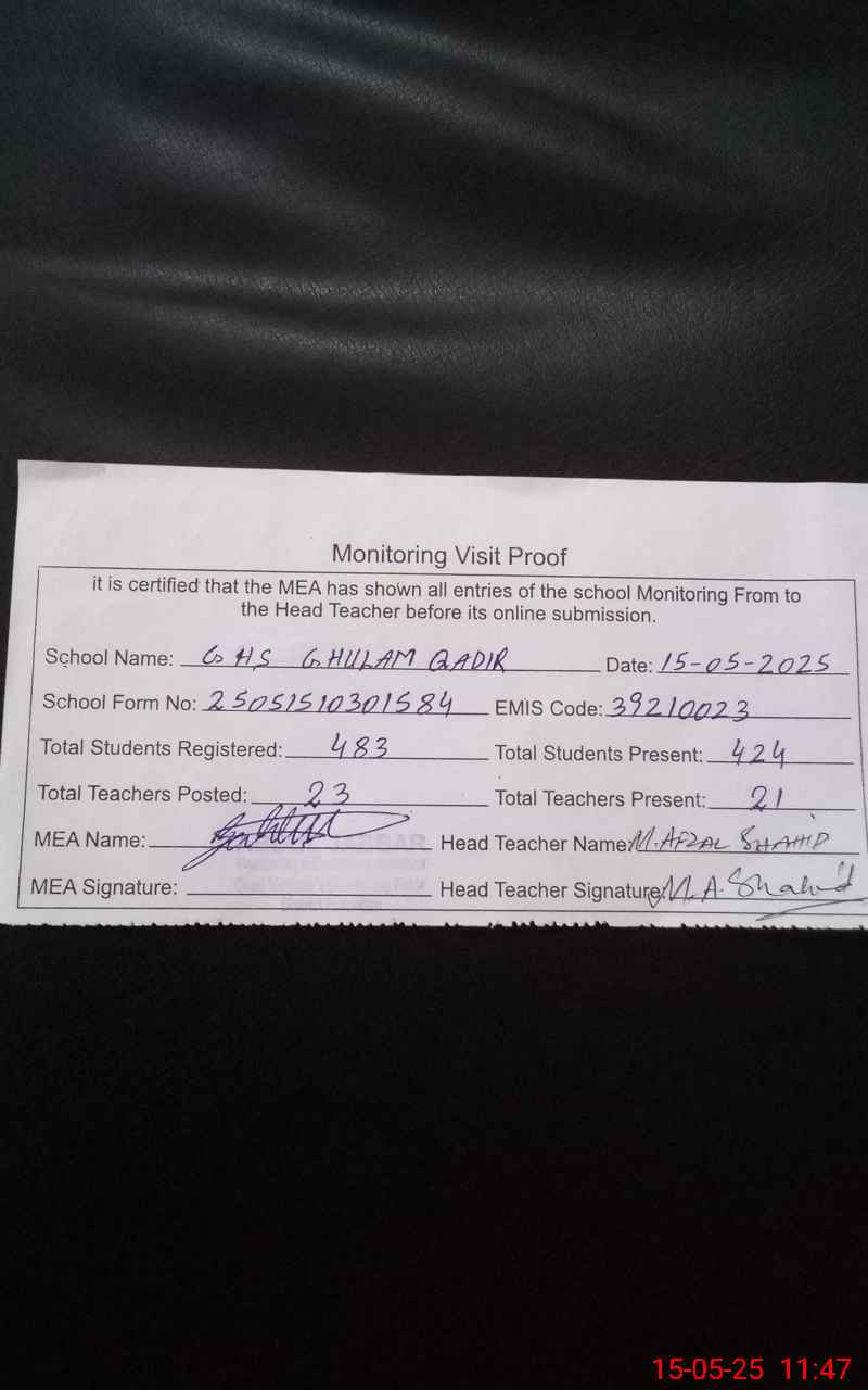| EMIS Code: 39210023 | Name of School: GHS GHULAM QADIR | |||