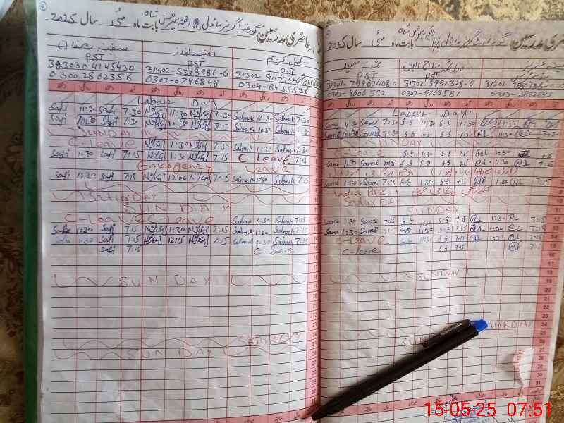 | CNIC | Full Name | Designation | R/C | Absence During Last Calender Month |