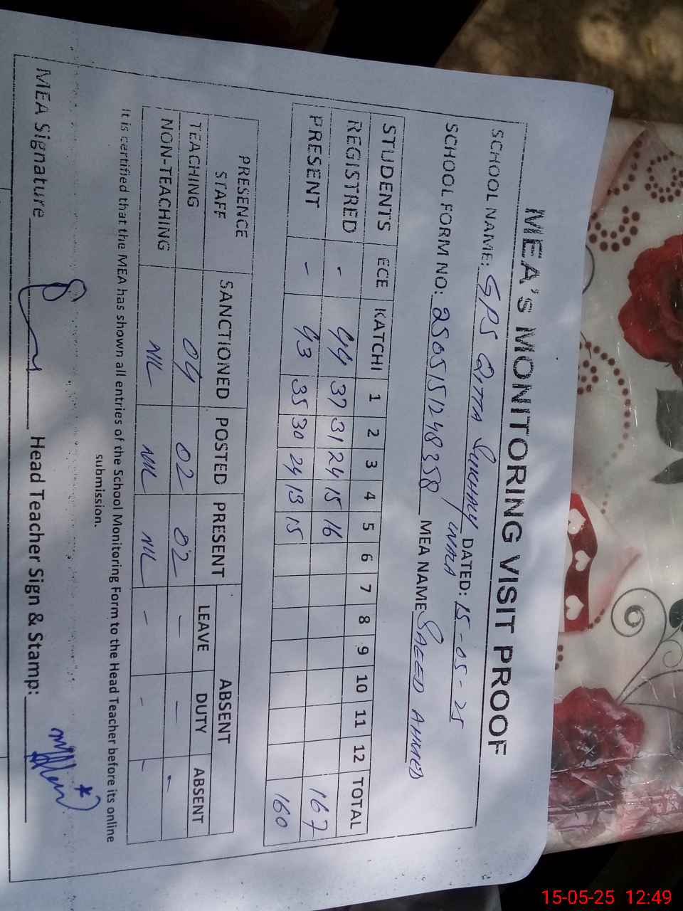 | EMIS Code: 36410656 | Name of School: GPS QITTA SUKHALAY WALA | |||