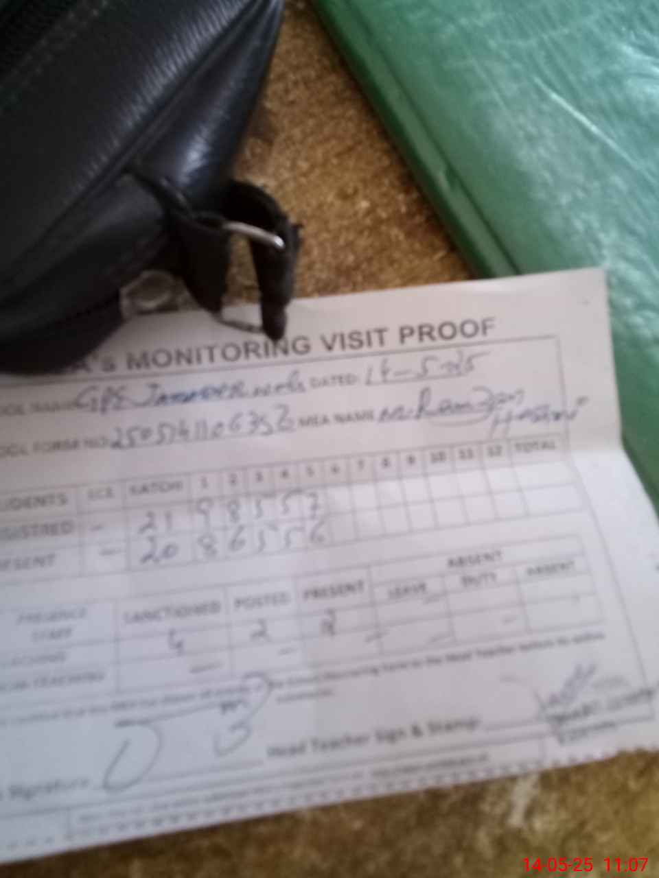 | Attendance Register | Head Teacher | MEA with School | Visit Proof |