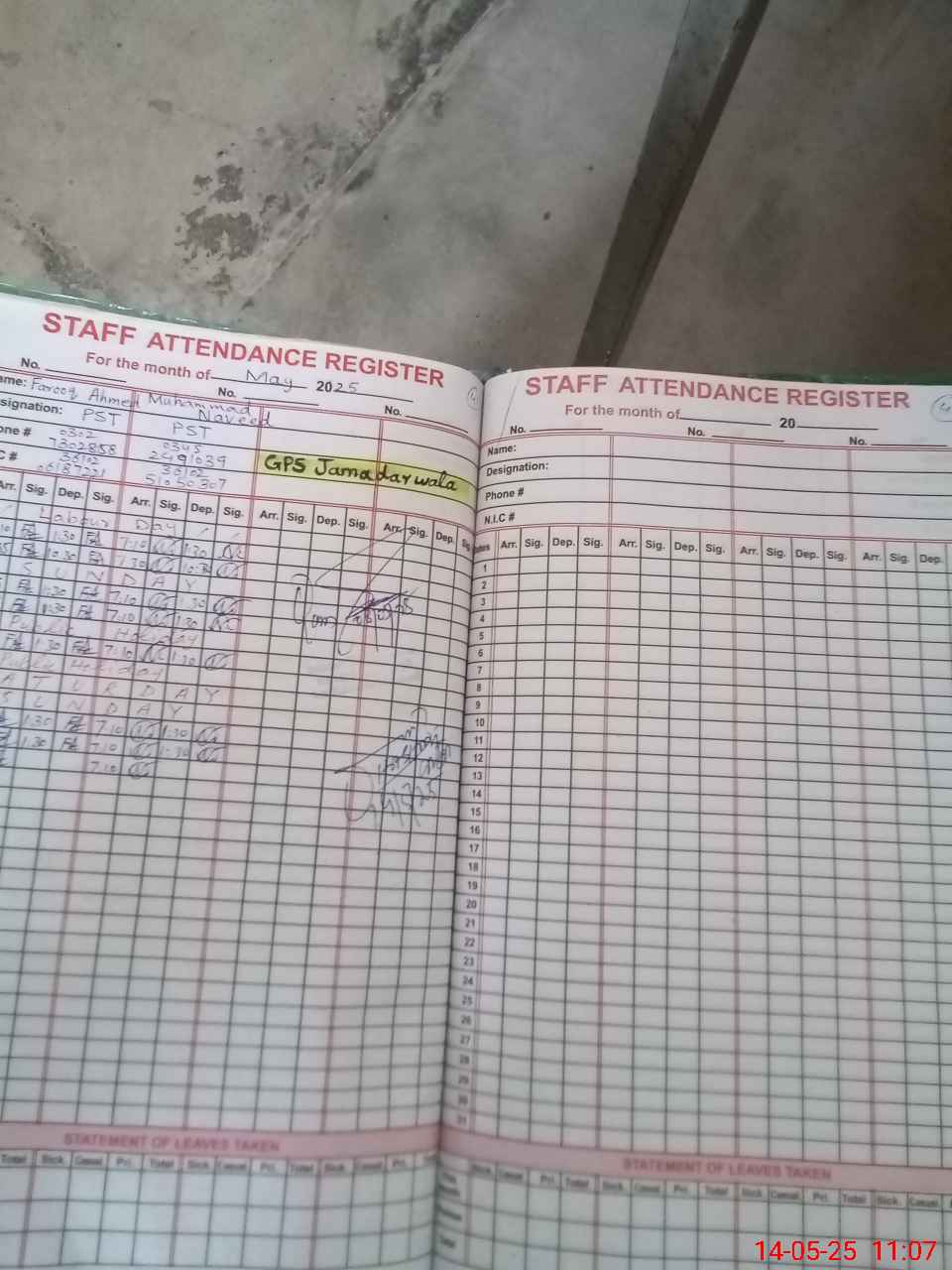 | CNIC | Full Name | Designation | R/C | Absence During Last Calender Month |