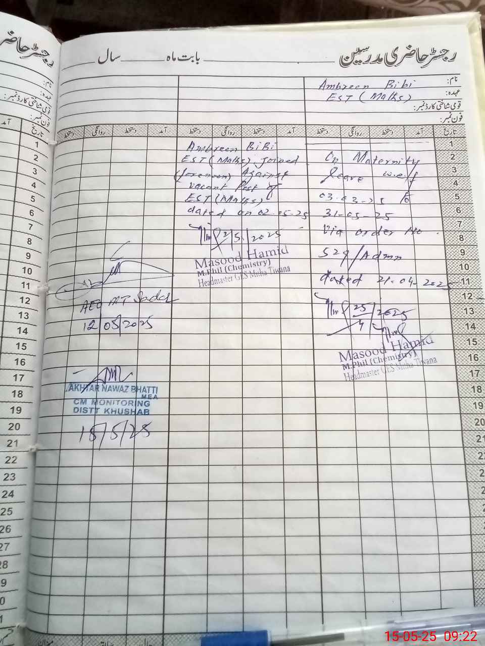 | Name: Ma**** Ha**** Designation: (School Headmaster's/Headmistress's) S.S.T Phone/Cell Number: 03**** |