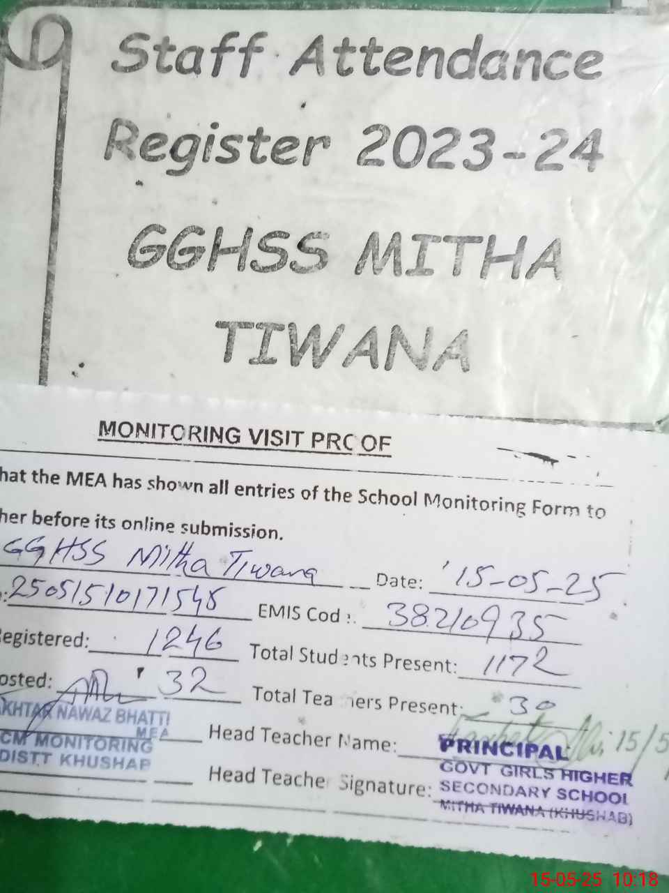 | EMIS Code: 38210935 | Name of School: GGHSS MITHA TIWANA | |||