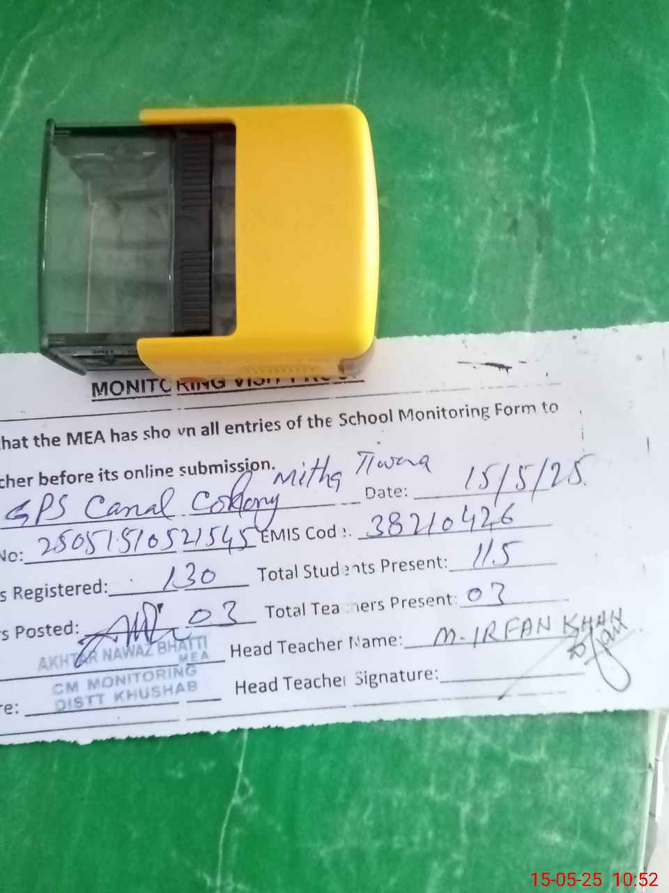 | Attendance Register | Head Teacher | MEA with School | Visit Proof |
