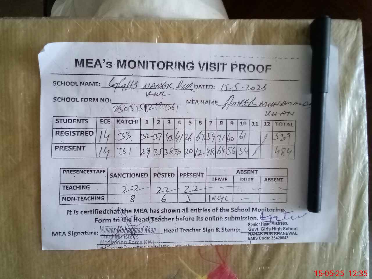 | EMIS Code: 36420048 | Name of School: GGHS NANAK PUR, KHANEWAL | |||