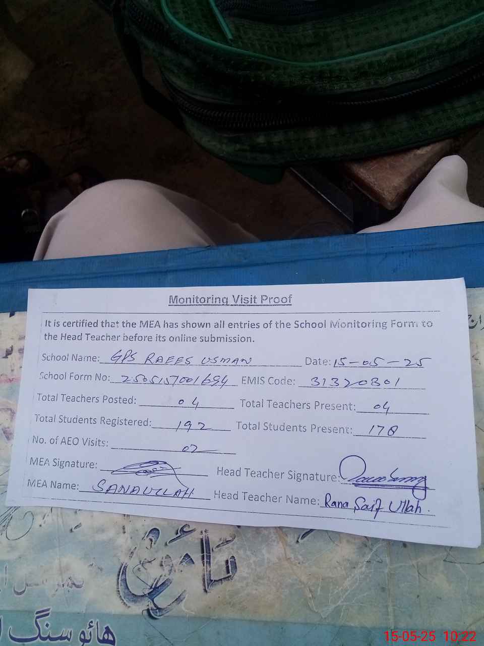 | EMIS Code: 31320301 | Name of School: GPS RAEES USMAN | |||