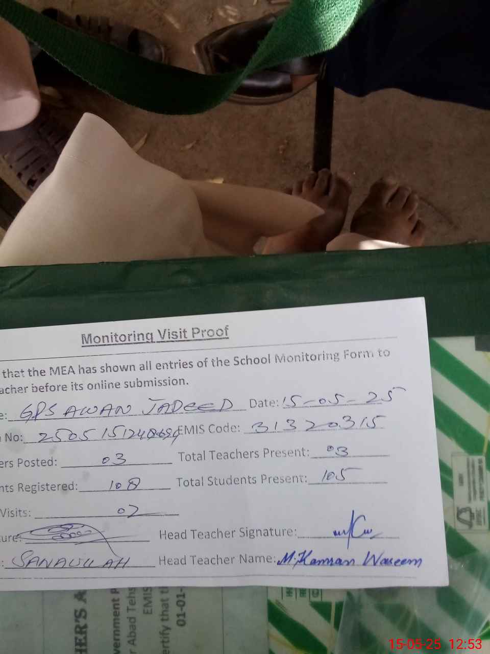 | EMIS Code: 31320315 | Name of School: GPS AWAN JADEED | |||