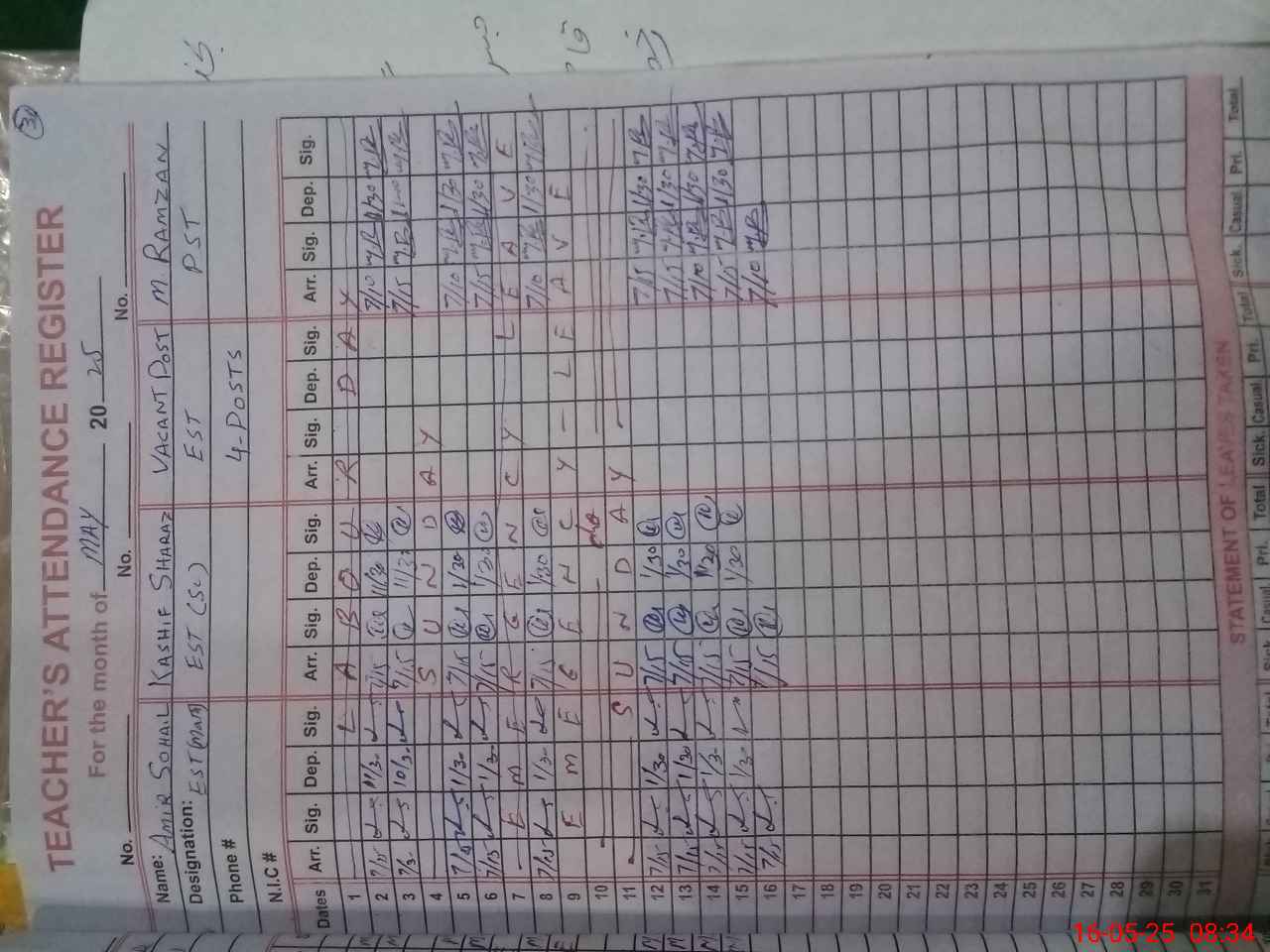 | 36**** | Ab**** Ha**** | SST | Regular | 0 | 0 | 0 | 0 | 0 | 0 | 0 | 0 | 0 | Exam Duty |
