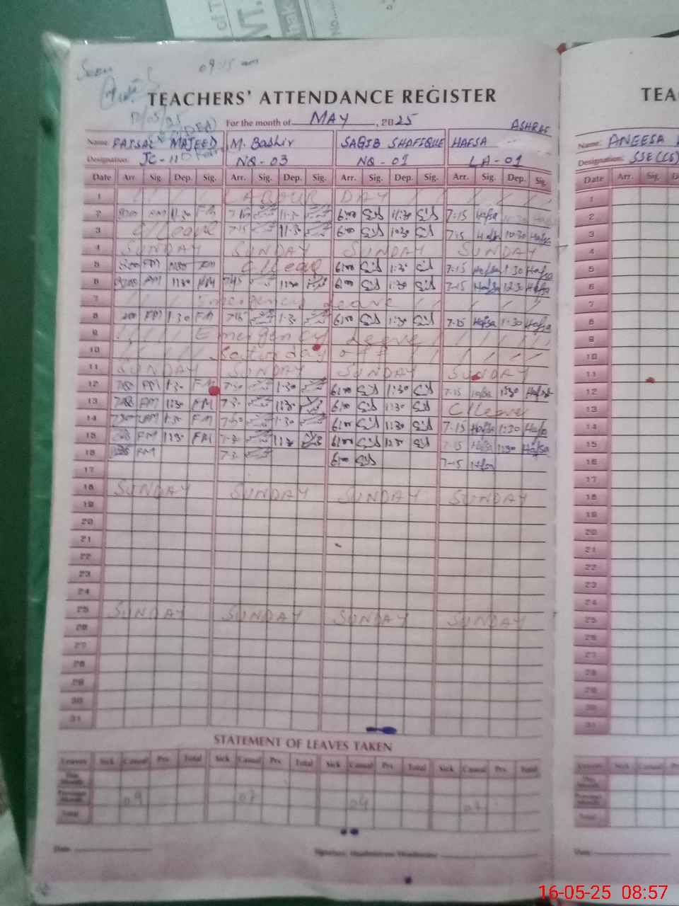 | CNIC | Full Name | Designation | R/C | Absence During Last Calender Month |