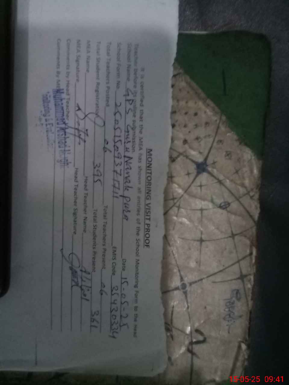 | Attendance Register | Head Teacher | MEA with School | Visit Proof |