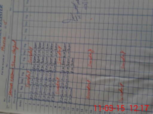 | CNIC | Full Name | Designation | R/C | Absence During Last Calender Month |