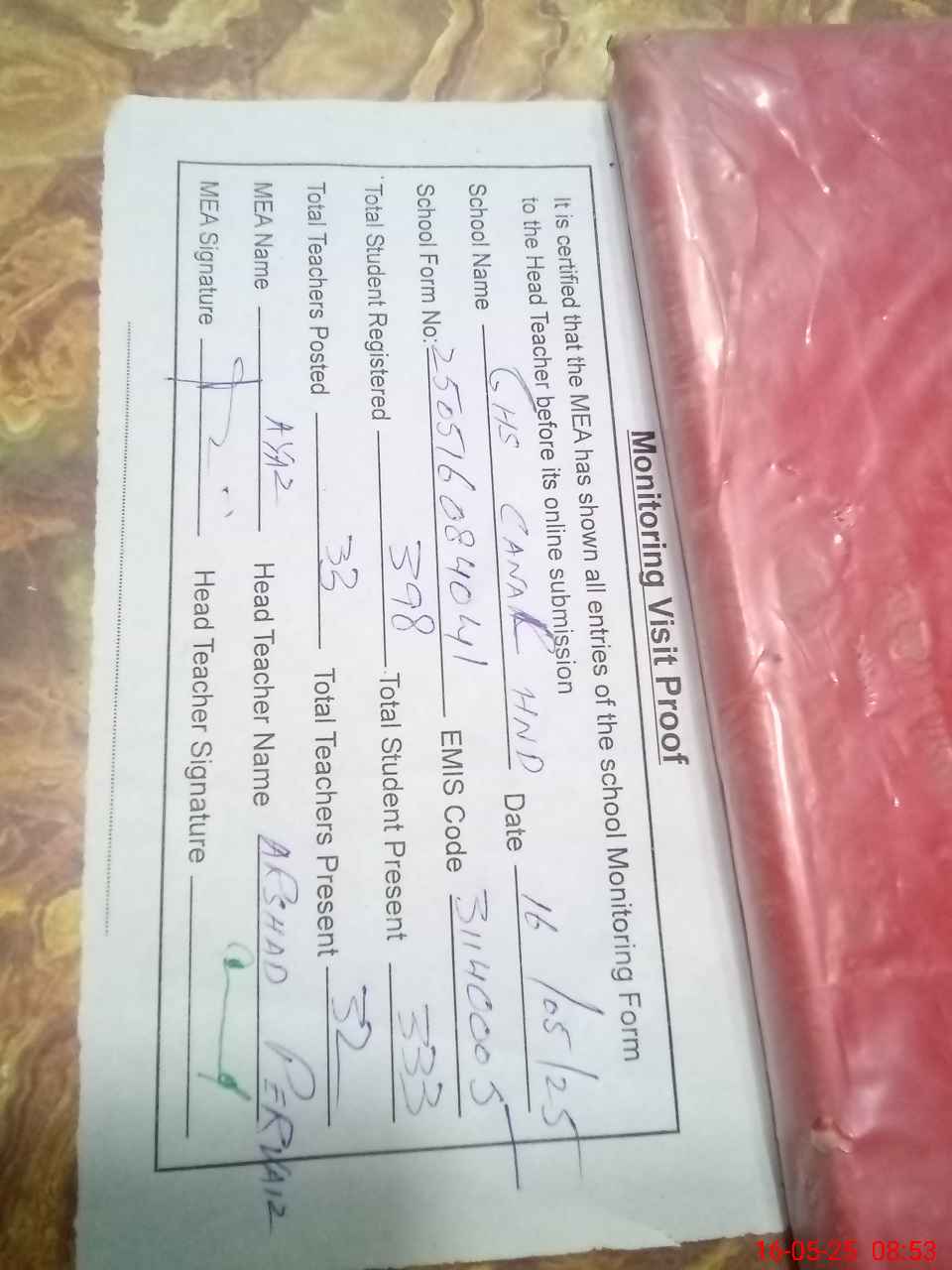 | EMIS Code: 31140005 | Name of School: GHS CANAL HAROON ABAD | |||