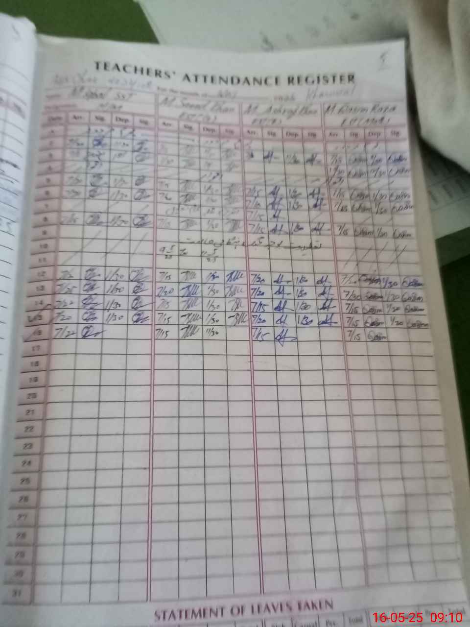 | CNIC | Full Name | Designation | R/C | Absence During Last Calender Month |