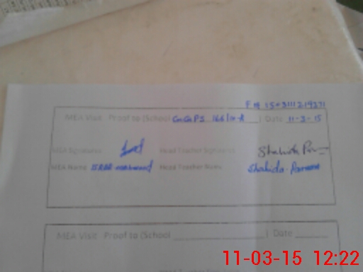 | Attendance Register | Head Teacher | MEA with School | Visit Proof |