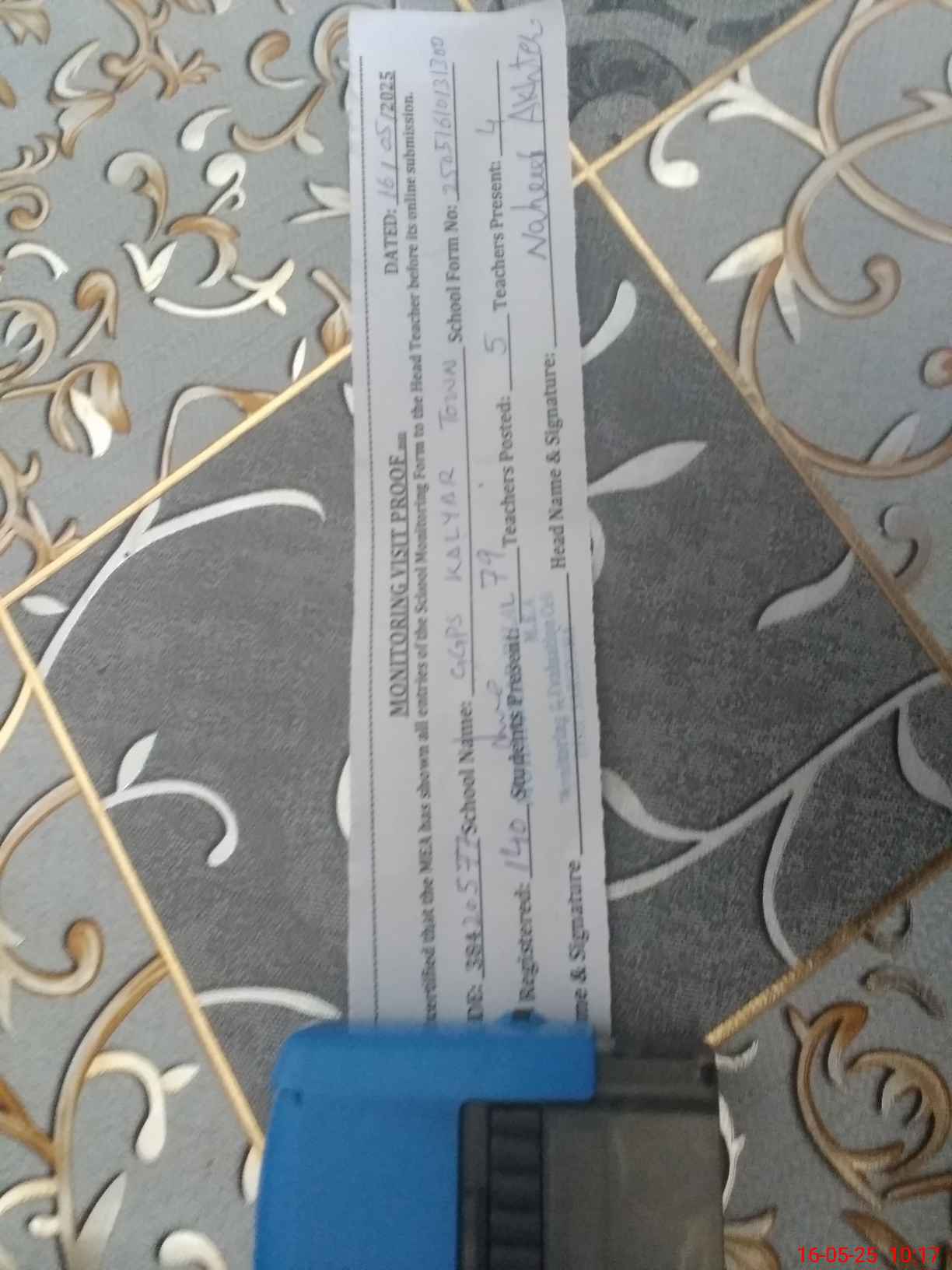 | Attendance Register | Head Teacher | MEA with School | Visit Proof |