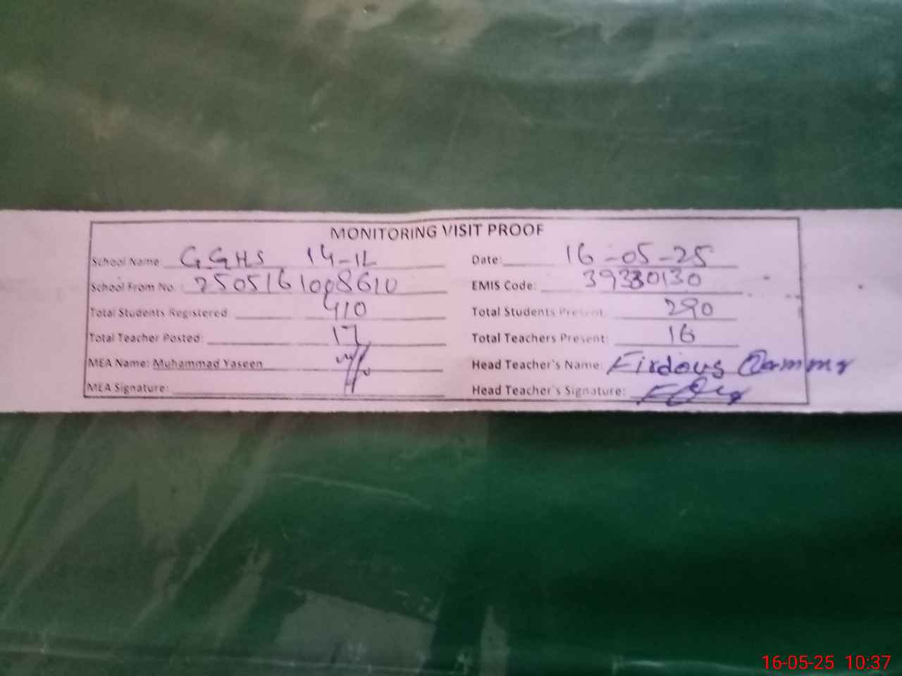 | EMIS Code: 39330130 | Name of School: GGHS CHAK NO. 14/1-L | |||