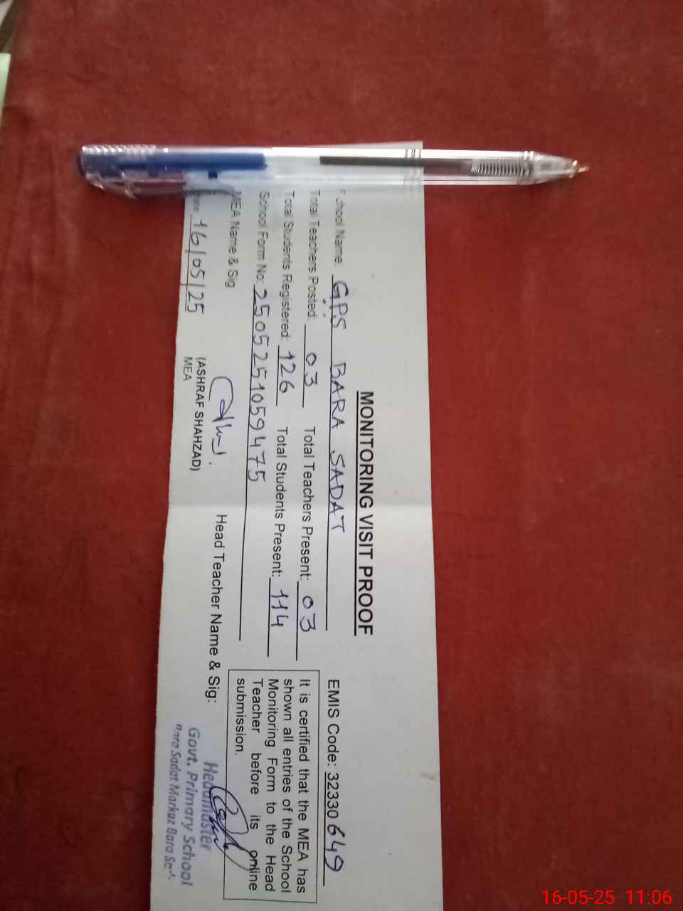 | EMIS Code: 32330649 | Name of School: GPS BARA SADAT | |||