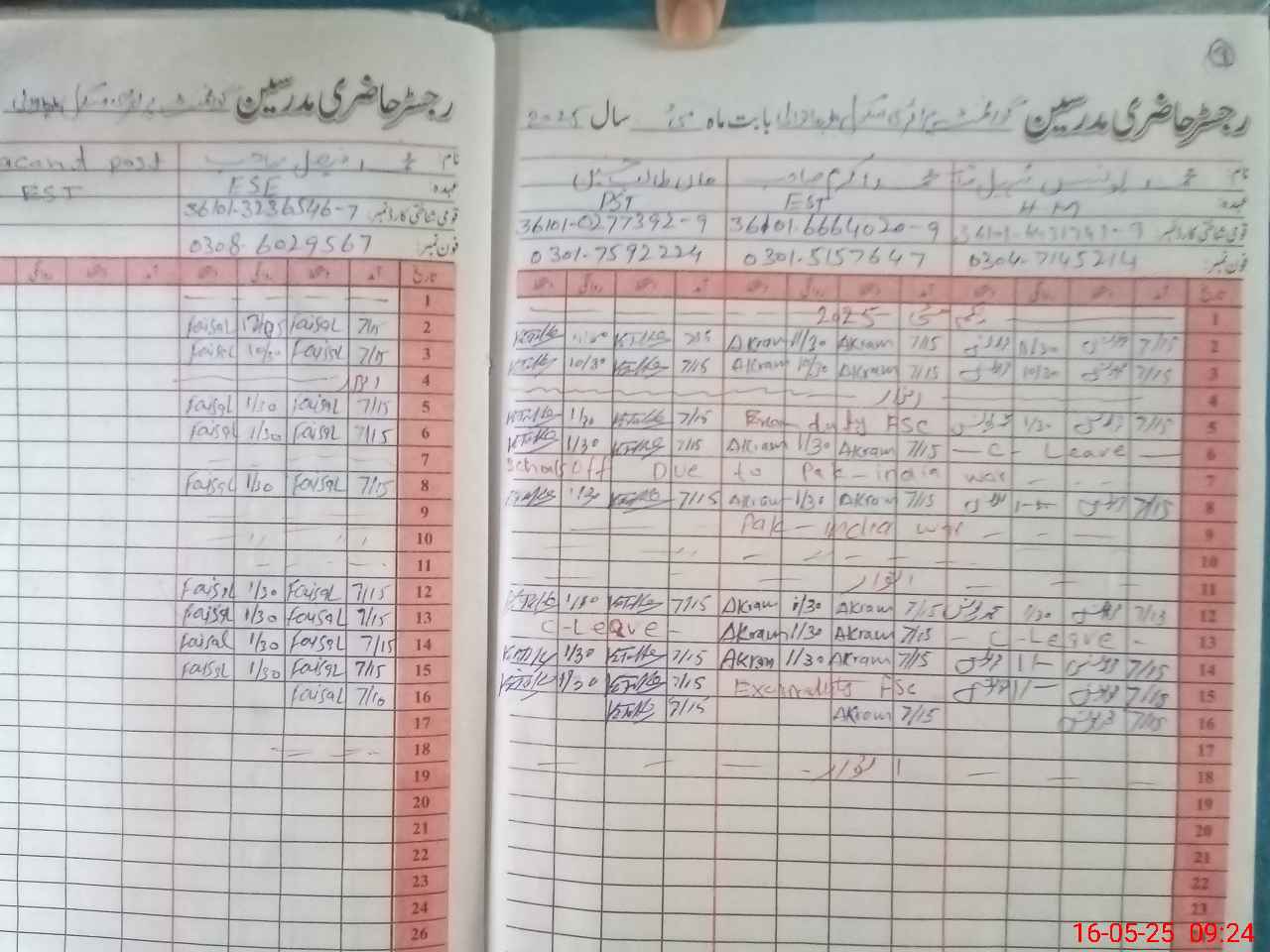 | CNIC | Full Name | Designation | R/C | Absence During Last Calender Month |