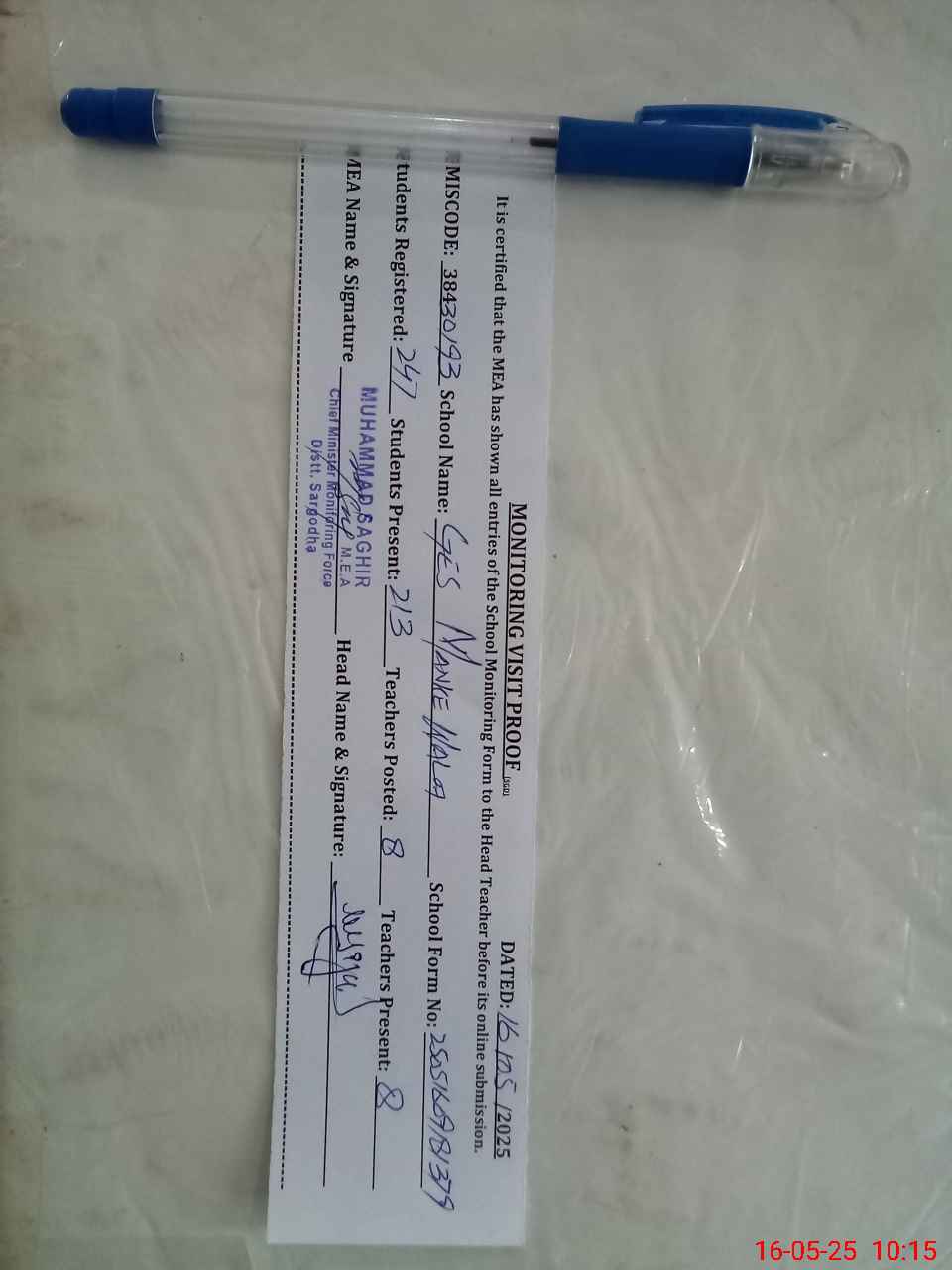 | EMIS Code: 38430193 | Name of School: GHS MANKEY WALA | |||
