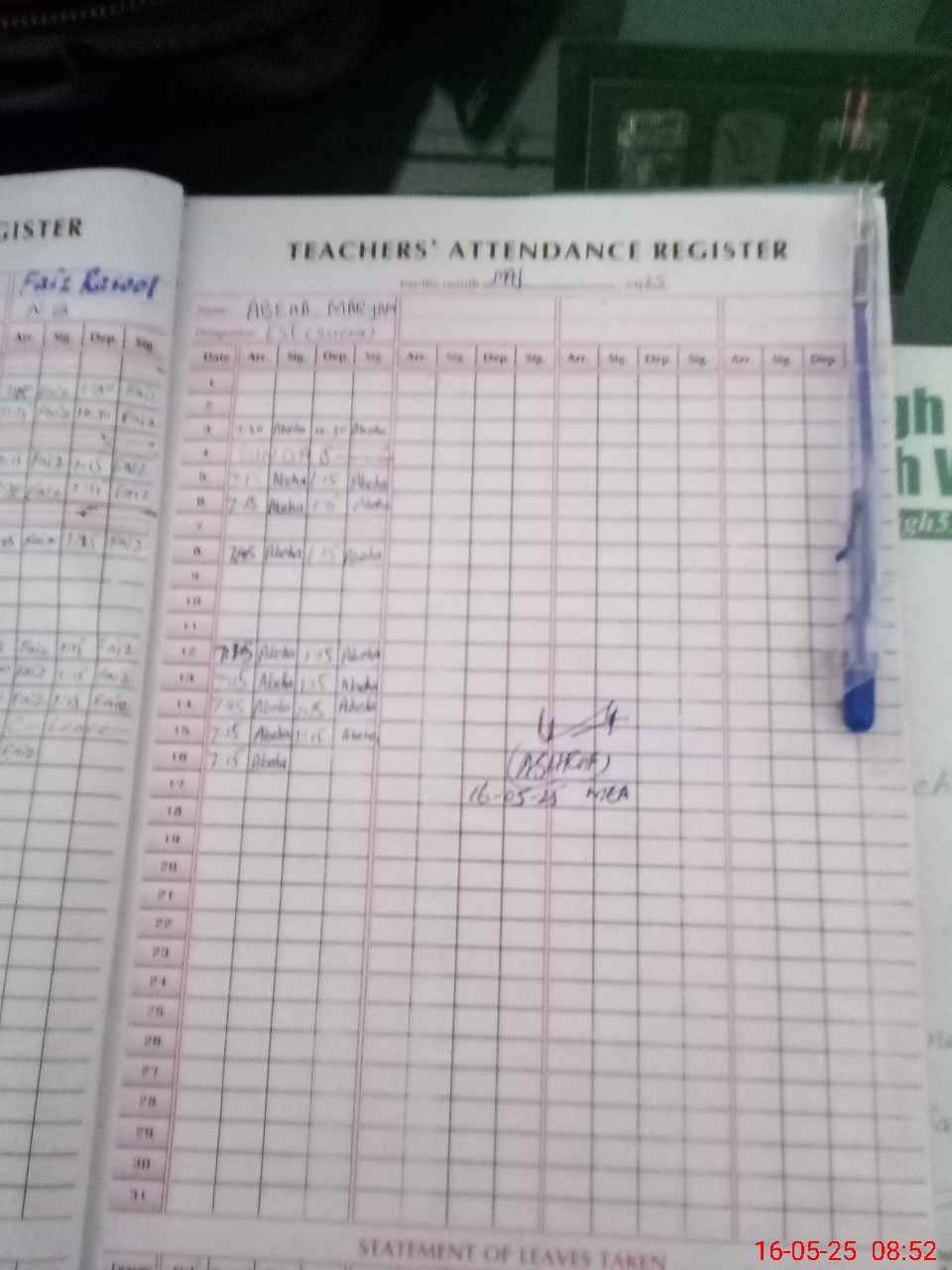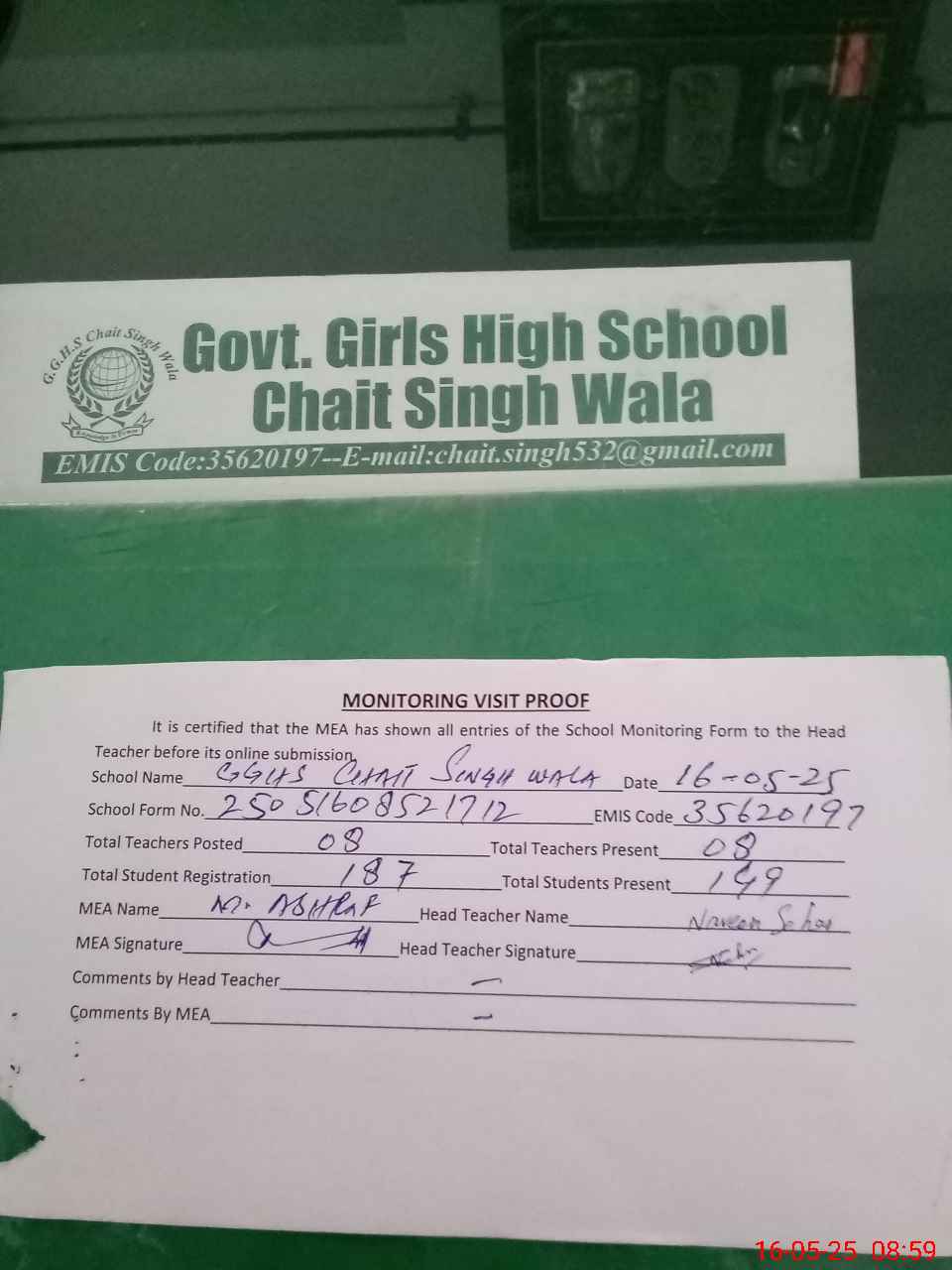 | Attendance Register | Head Teacher | MEA with School | Visit Proof |