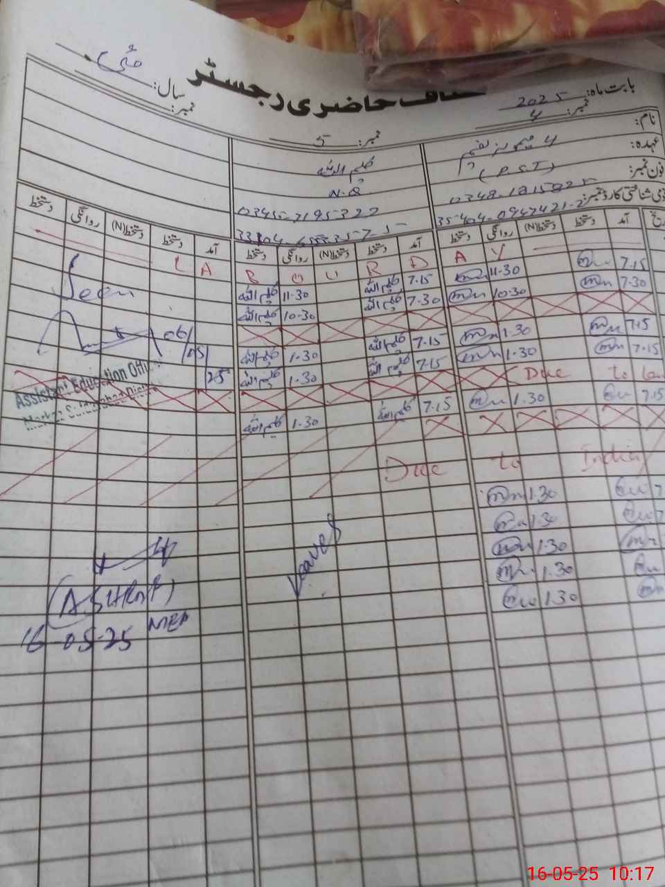 | CNIC | Full Name | Designation | R/C | Absence during last cal. month |