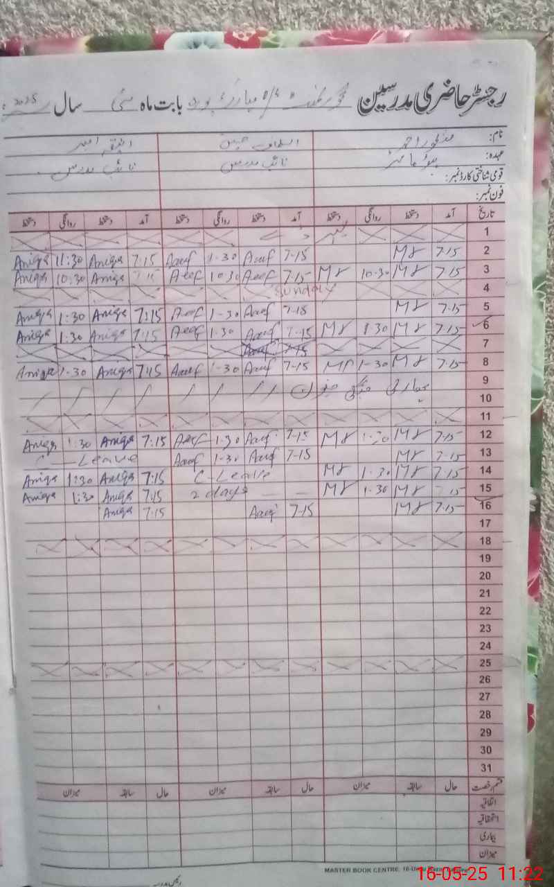 | CNIC | Full Name | Designation | R/C | Absence During Last Calender Month |