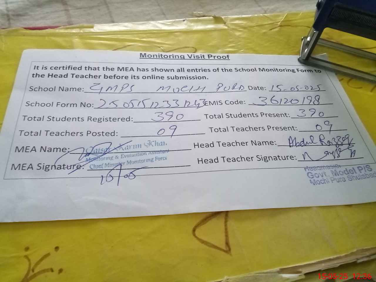 | EMIS Code: 36120198 | Name of School: GMPS MOCHI PURA SHUJABAD DISTT. MULTAN | |||