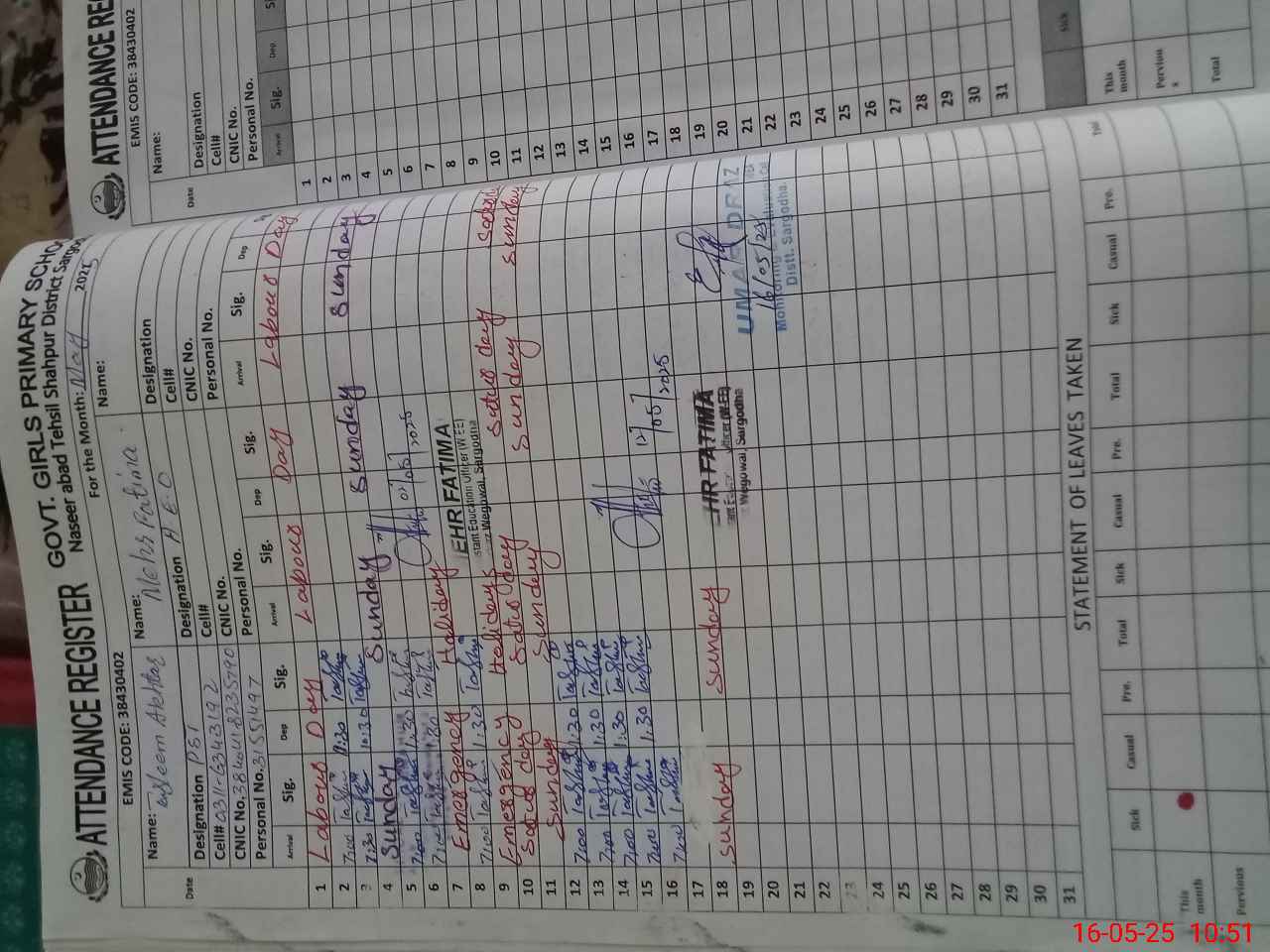 | Name: TA**** AK**** Designation: (School Headmaster's/Headmistress's) PST Phone/Cell Number: 03**** |