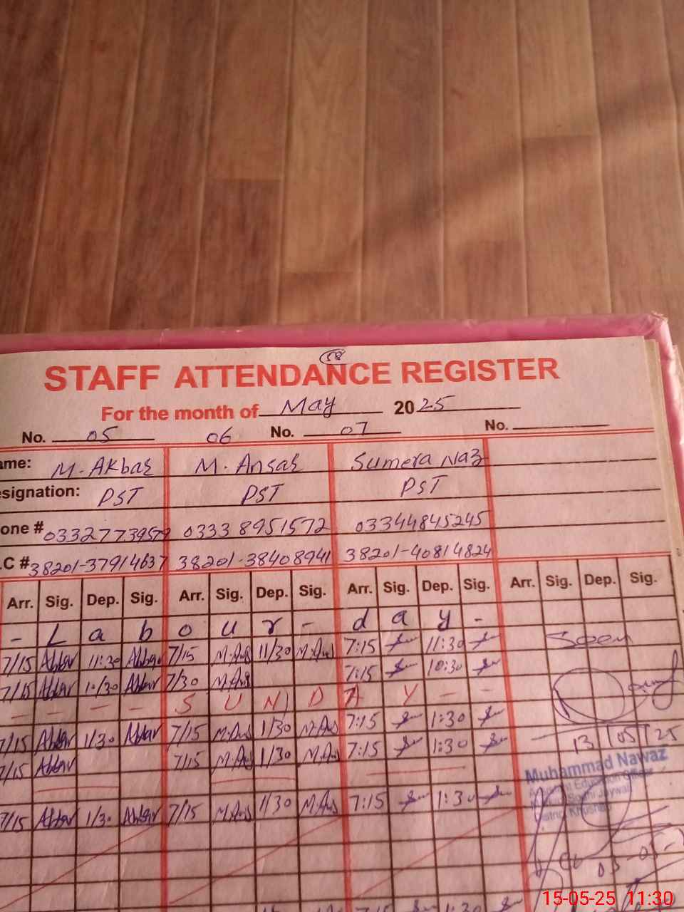 | CNIC | Full Name | Designation | R/C | Absence During Last Calender Month |