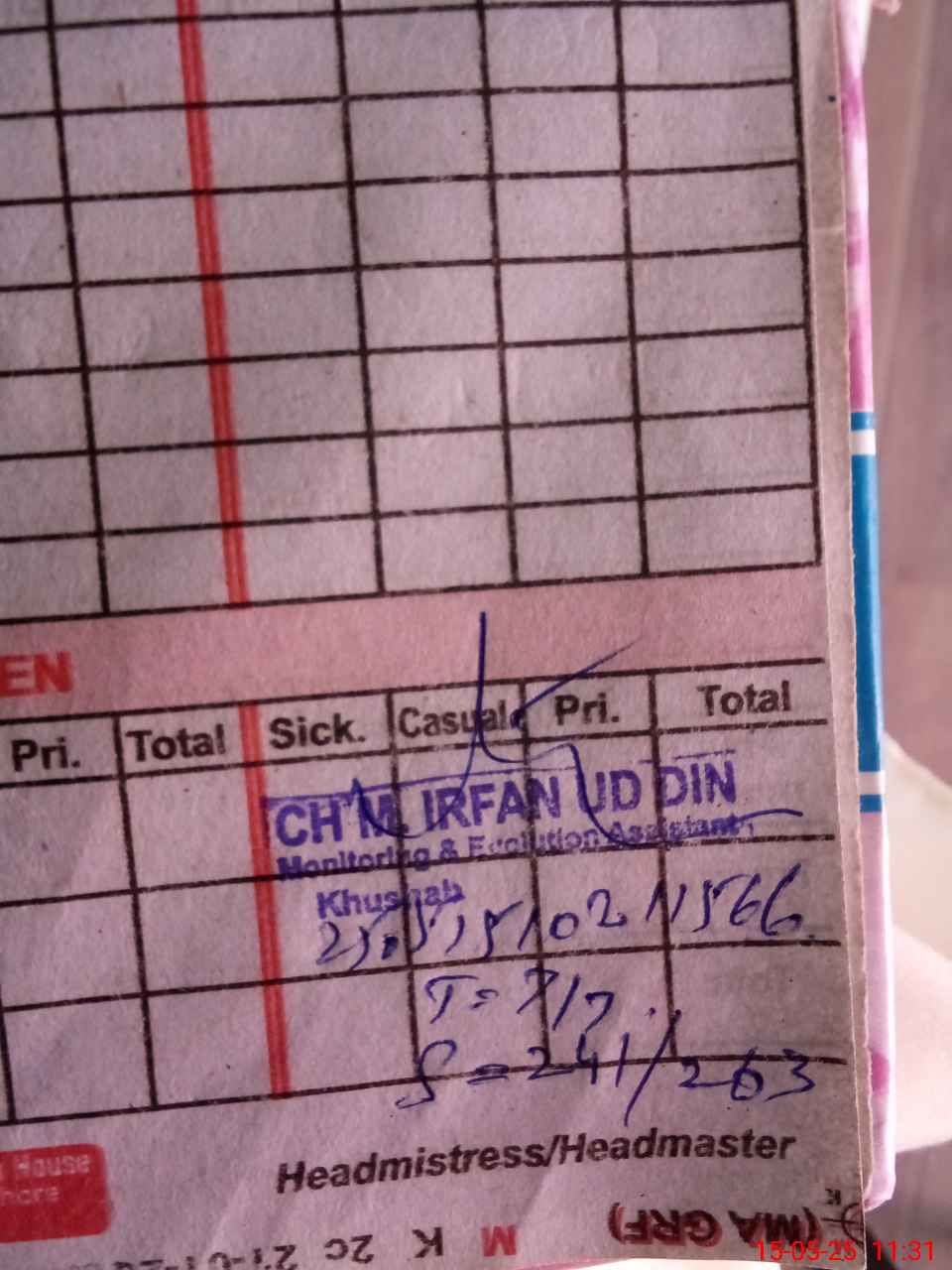 | Name: At**** Bi**** Designation: (School Headmaster's/Headmistress's) Pst Phone/Cell Number: 03**** |