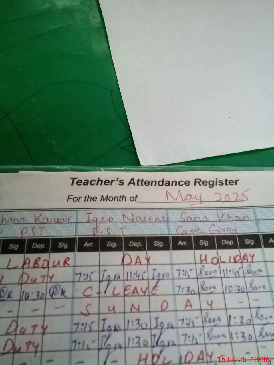 | CNIC | Full Name | Designation | R/C | Absence During Last Calender Month |