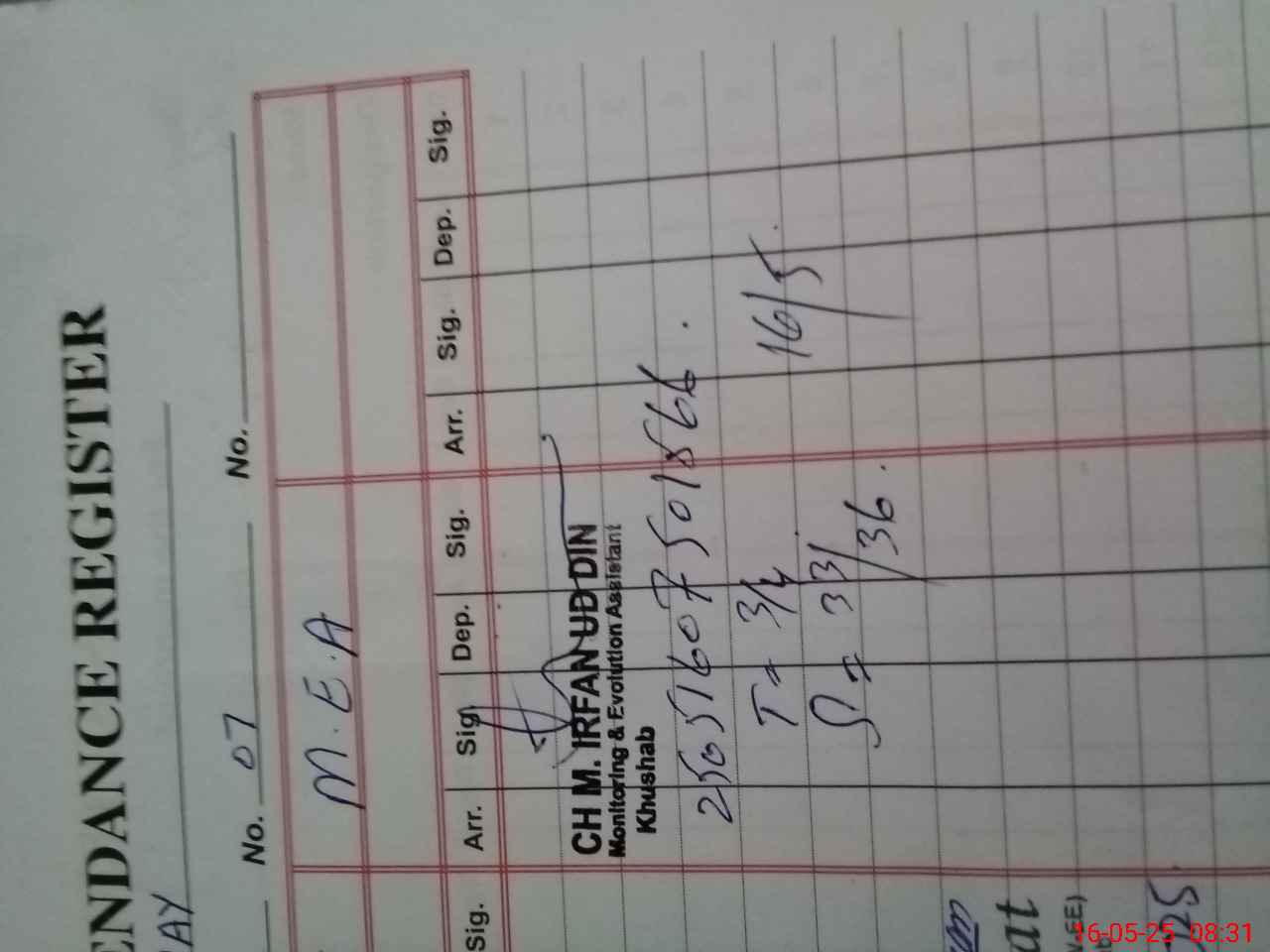 | Name: IR**** AH**** Designation: (School Headmaster's/Headmistress's) PST Phone/Cell Number: 03**** |