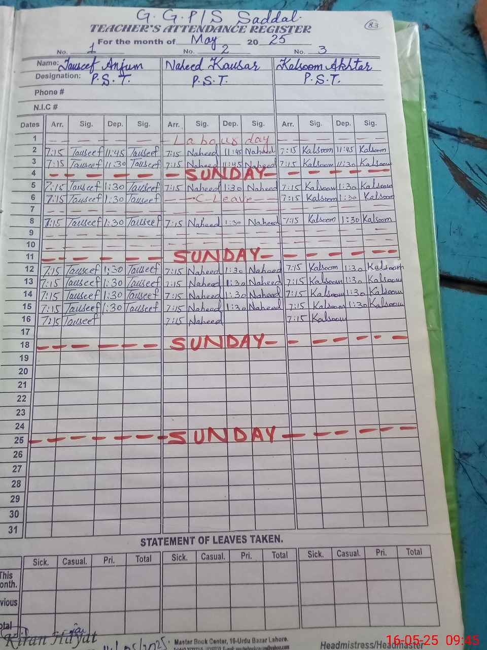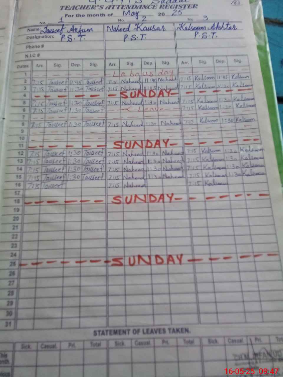 | Remarks (Use Separate Page if Required): Headship issue exist as madam toseef is acting as head and mis naheed has orders but not willing to accept the post | |||||