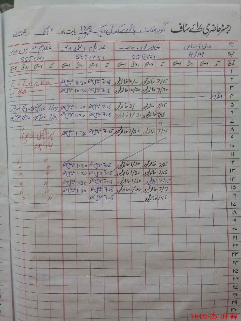 | 31**** | Mu**** Sa**** Gh**** | PST | Regular | 0 | 0 | 0 | 0 | 0 | 0 | 0 | 0 | 0 | Exam Duty |