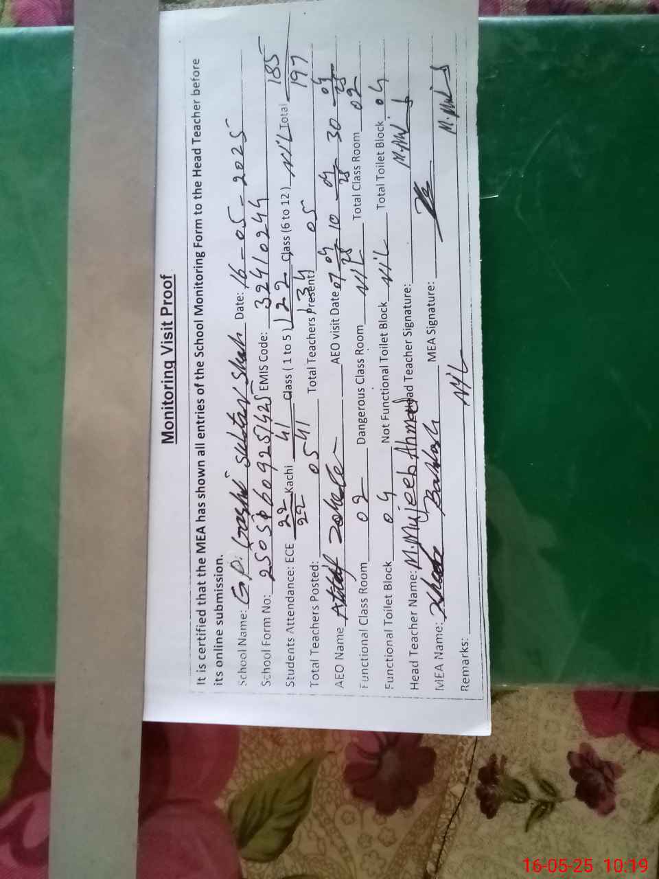 | Certified that this School was Inspected by the Undersigned MEA/DMO Today and the Information Stated Above is as Per Record. | |||||