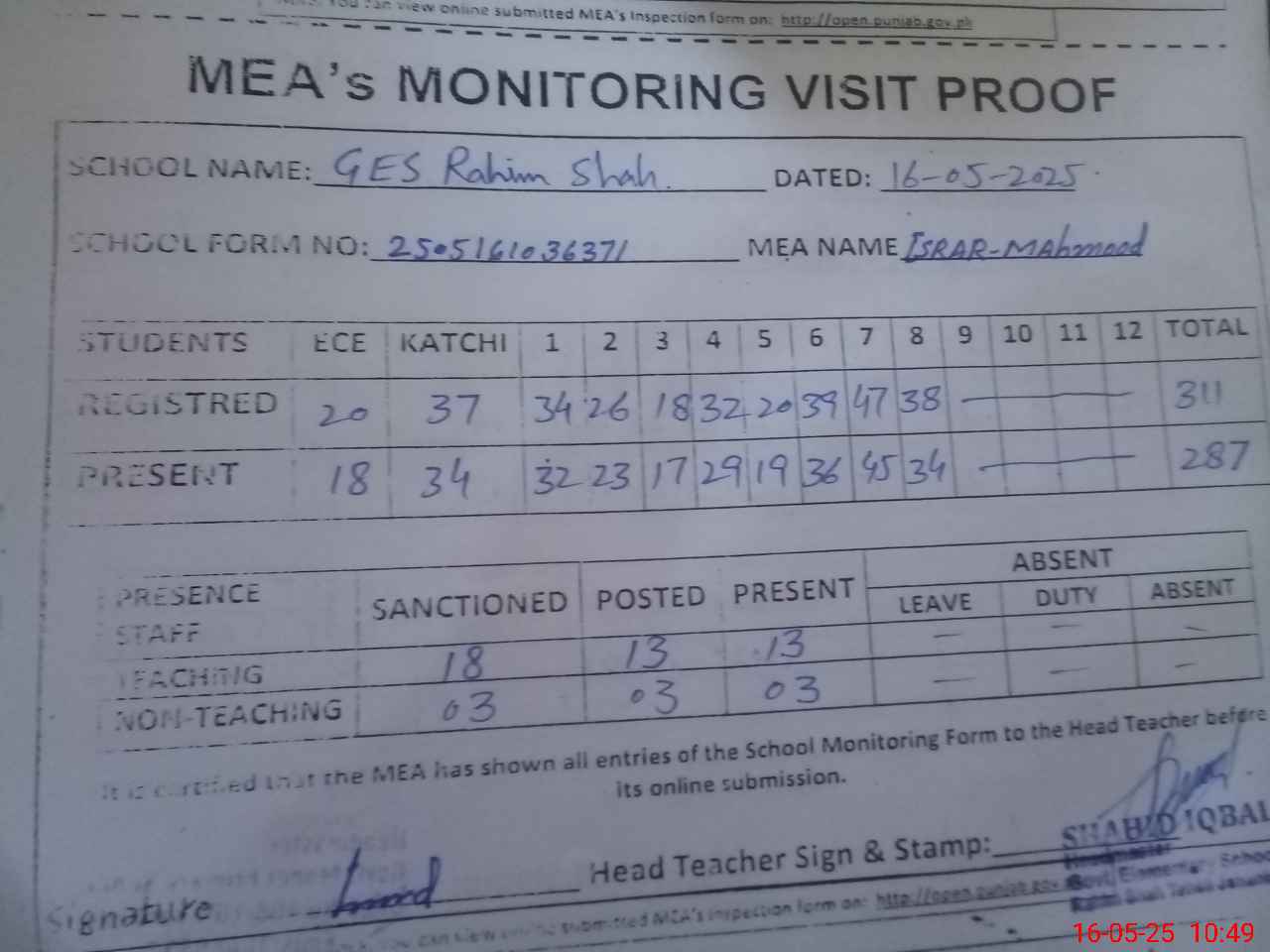| EMIS Code: 36440084 | Name of School: GES RAHIM SHAH, JAHANIAN | |||