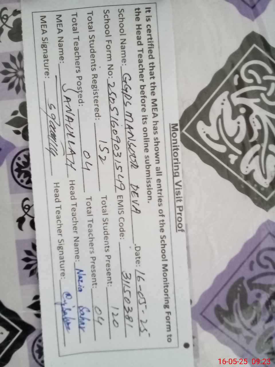 | EMIS Code: 31150381 | Name of School: GGPS MANSOOR DIVA | |||