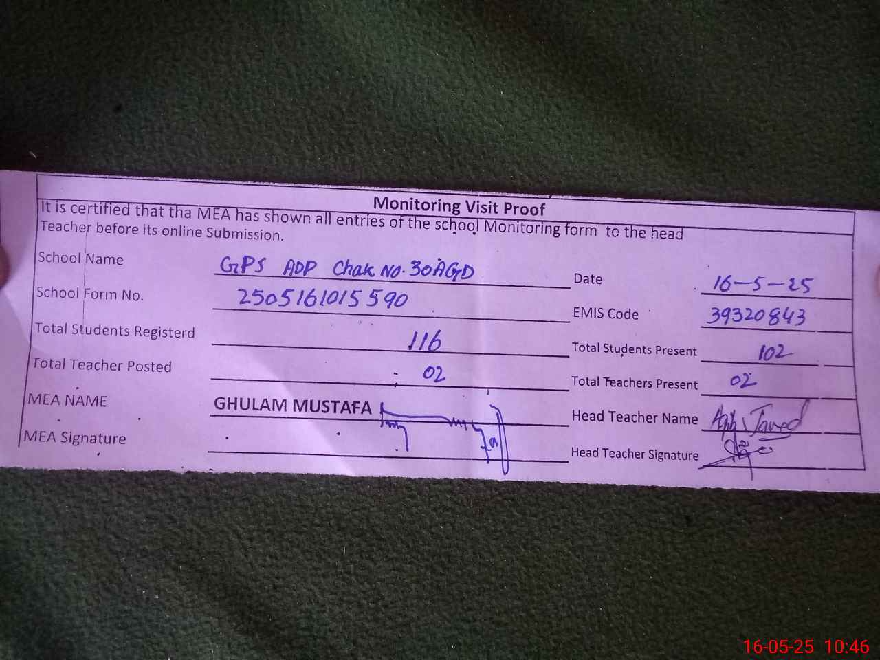 | EMIS Code: 39320843 | Name of School: GPS ADP CHAK NO. 30-A/G.D | |||