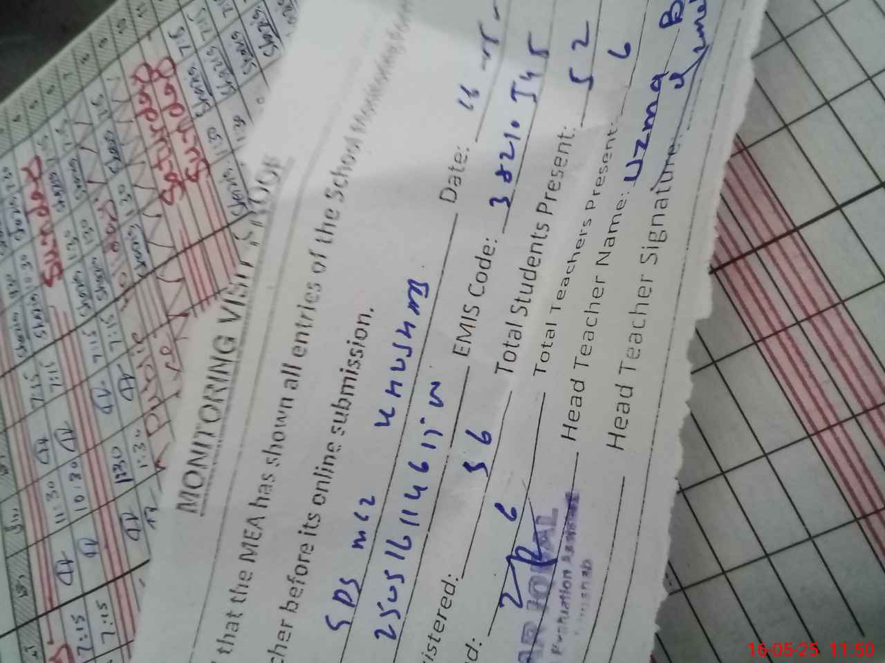 | Attendance Register | Head Teacher | MEA with School | Visit Proof |
