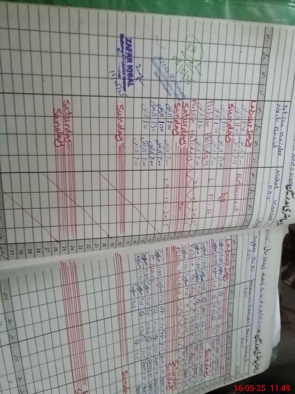 | CNIC | Full Name | Designation | R/C | Absence During Last Calender Month |