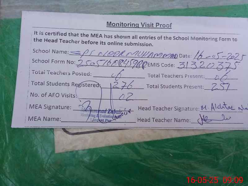 | EMIS Code: 31320375 | Name of School: GPS NOOR MUHAMMAD | |||