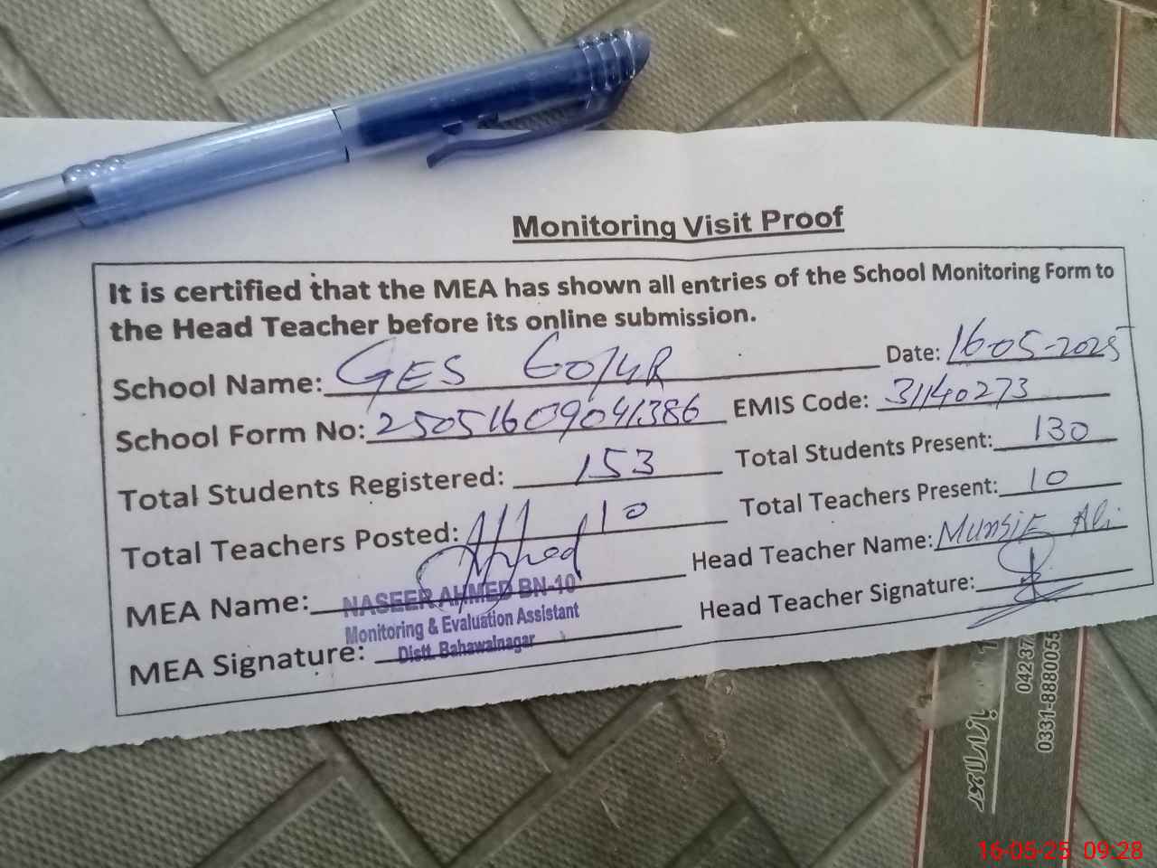 | EMIS Code: 31140273 | Name of School: GES CHAK NO. 60/4-R | |||