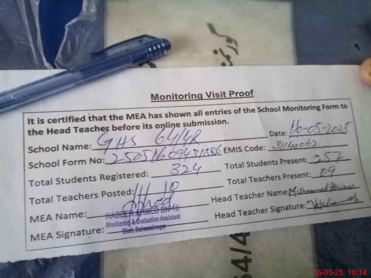 | EMIS Code: 31140062 | Name of School: GHS CHAK 64/4-R | |||