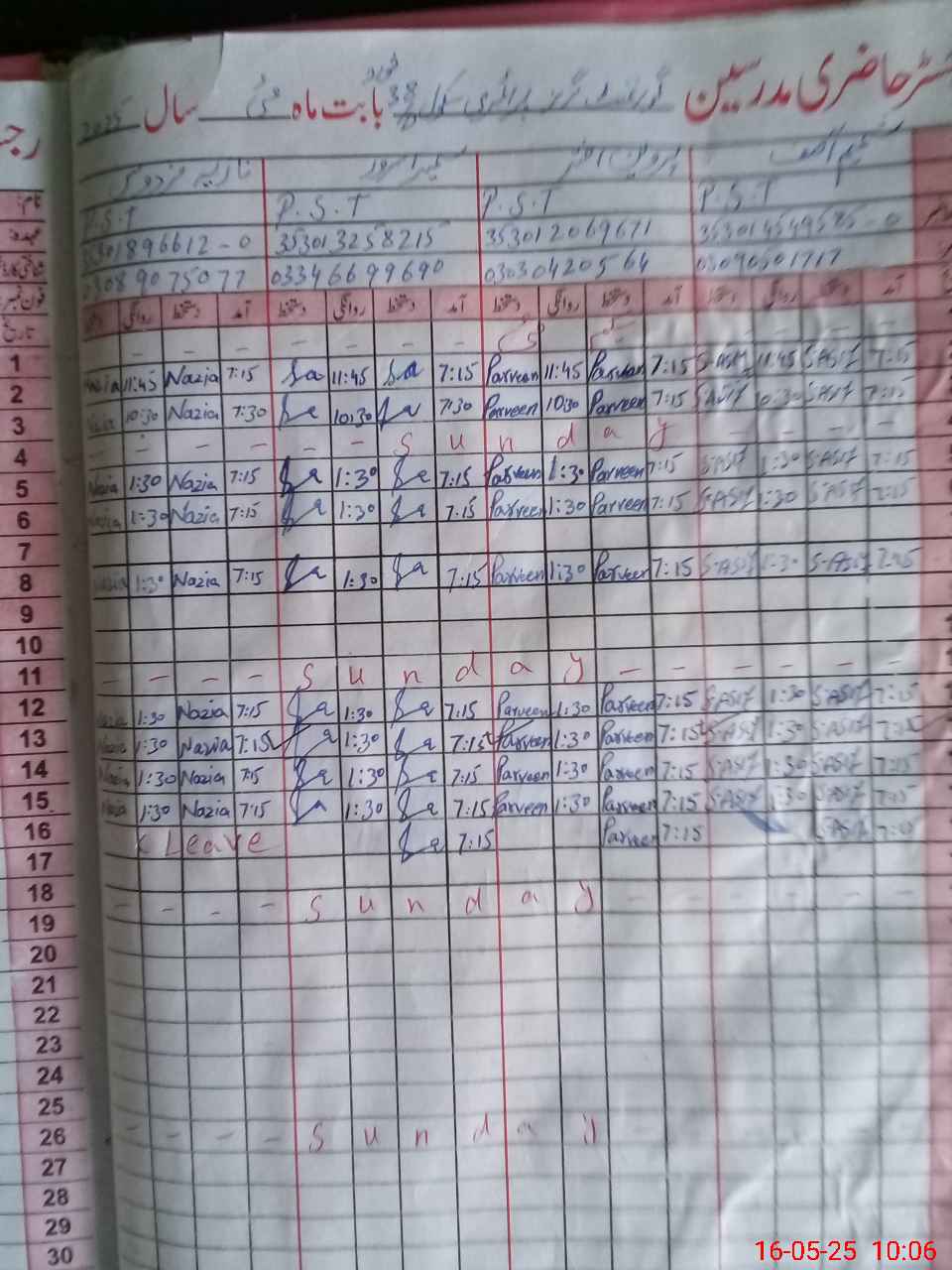 | Name: Sh**** As**** Designation: (School Headmaster's/Headmistress's) PST Phone/Cell Number: 03**** |